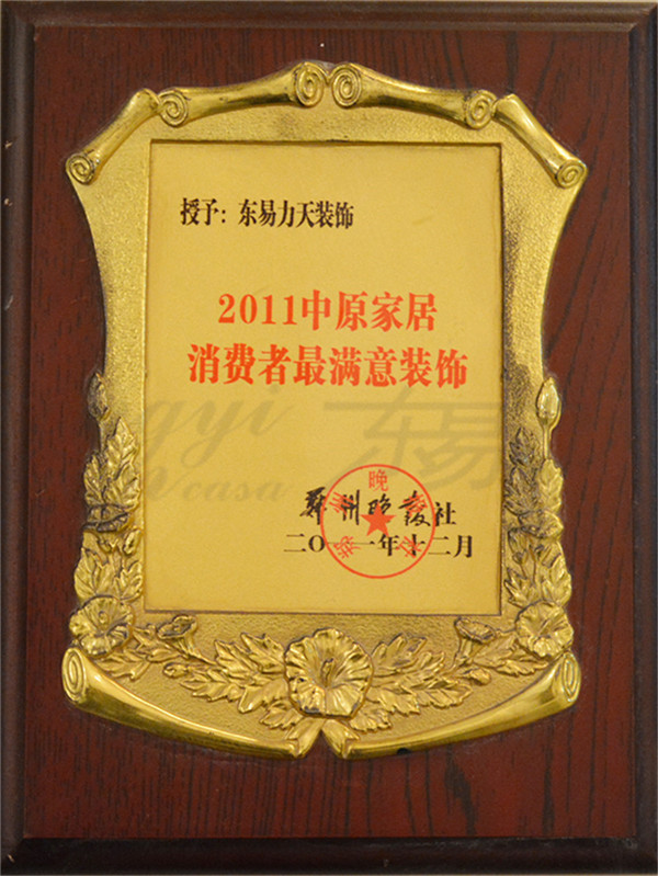 東易力天裝飾2011年12月被鄭州晚報社授予“2011中原家居消費者*滿意裝飾”。