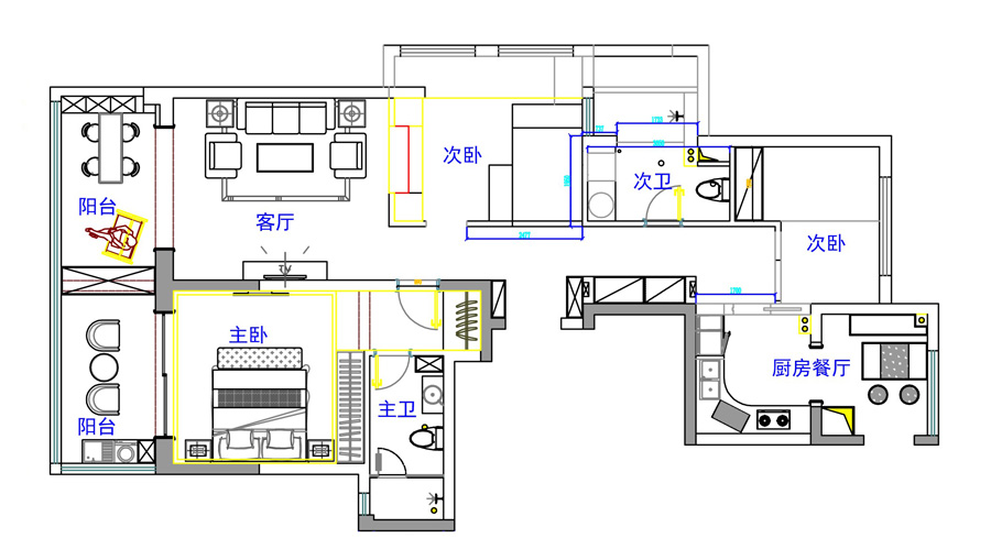 幸福濱水家園C戶型裝修設計平面效果圖