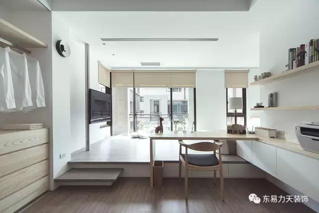 開放式的衣帽間,一邊可以放上自己喜歡的各種衣服,另一邊還可以輕松的辦公或者看書,那也是一種很美的享受。