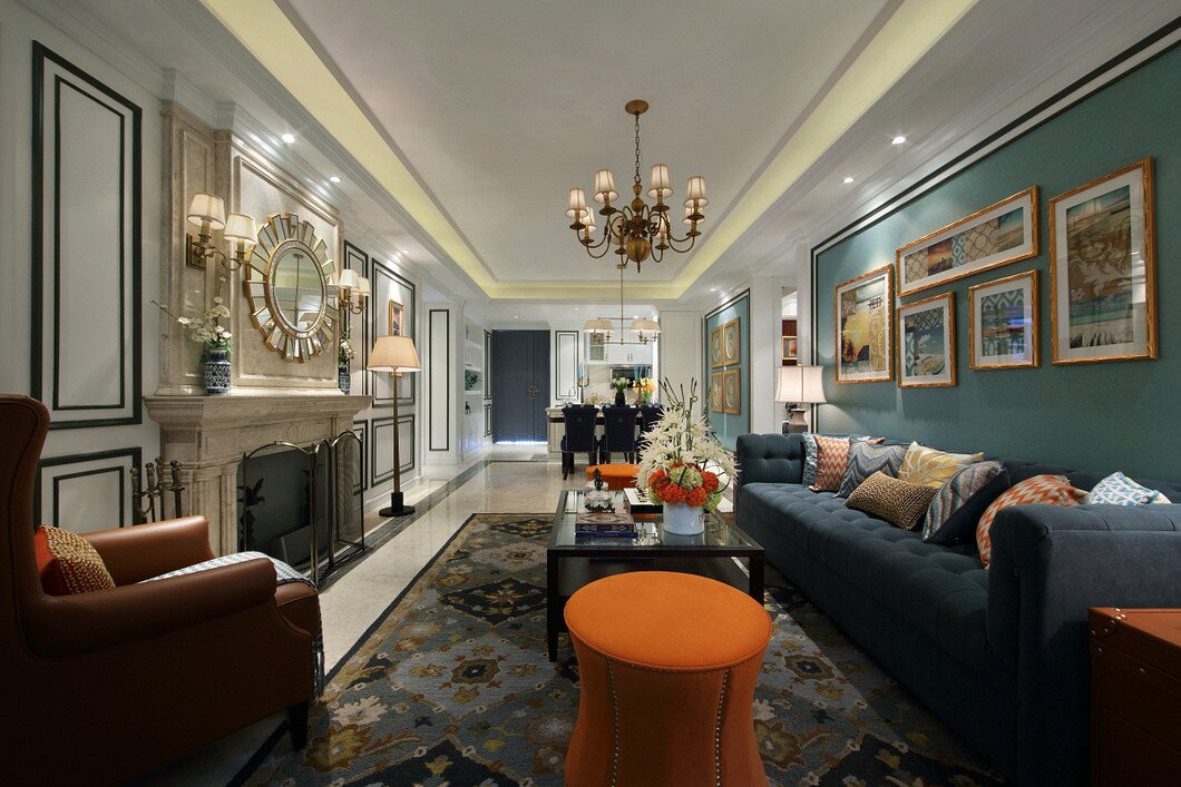 本案的設計在美式風格的基礎上,加入了許多清新的元素,整體看起來比較比較舒適愜意,清新溫馨。明亮的色調和簡潔的家居配飾搭配營造出一種舒適自 然的氛圍。 美式風格有著美...
