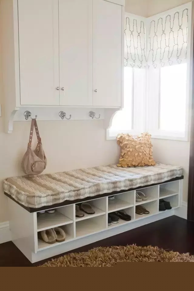 如果擔(dān)心開敞式的衣架會堆積灰塵,選擇這種高低搭配的儲物柜也不錯(cuò),但是切記高柜不要太多,否則會使整體空間看起來很憋屈和逼仄,反而適得其反。