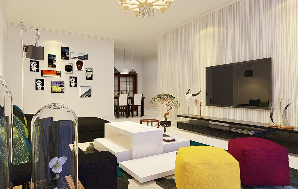 升龍城現(xiàn)代簡約-電視背景墻效果圖